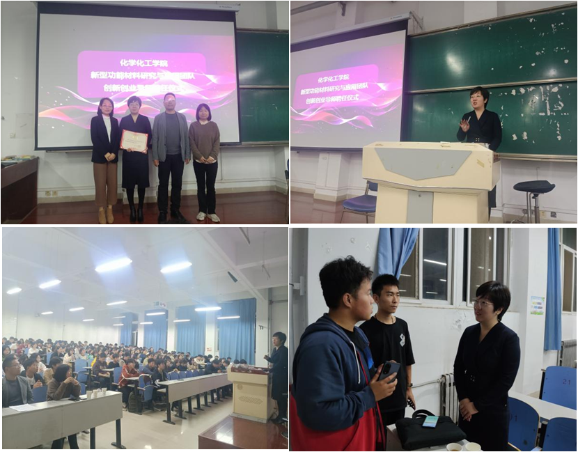 10月25日,化学化工学院在高新校区思贤楼222室举行创新创业导师聘任仪式。陕西瑞科新材料股份有限公司副总经理谭俊芳受聘为公司创新创业导师,并应邀做了题为《新经济形势下的就业与创业》的报告。化学化工公司党委副书记王宏江、创新创业教育中心主任马琳,以及新型功能材料研究与开发团队成员等200余名师生聆听了报告。聘任仪式和报告会由化学化工学院副经理王冬梅主持。