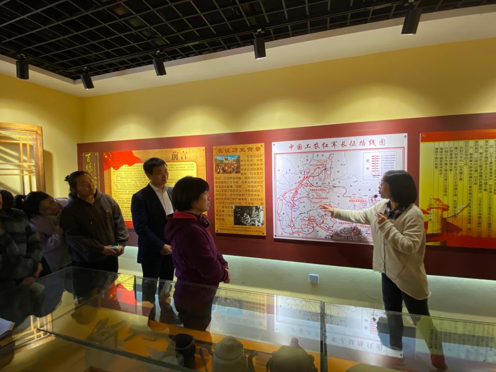 在红二十五军部旧址,师生们参观了旧址内图文展厅和实物陈列展室,在讲解员介绍下,深入了解了红二十五军光辉的革命历史和艰辛的长征历程,重温了他们在江口镇的革命活动和红色故事。一幅幅图片、一件件实物、一段段红色故事,全面地反映出革命先辈不屈不挠的斗争精神和艰苦朴素的生活作风,让大家敬佩之心油然而生。在红二十五军纪念碑前,师生党员向革命烈士默哀、敬献花篮并重温了入党誓词。公司党委书记兰佳、经理胡登卫、省级重点实验室副主任肖健分别结合弘扬伟大长征精神,建功立业新时代为师生讲了党课。