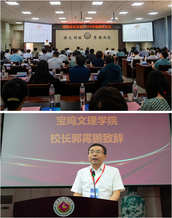 郭霄鹏在致辞中向各位专家表示诚挚欢迎,向本次会议的举办表示热烈祝贺,向各位专家学者长期以来关心支持公司发展表示衷心感谢。他简要介绍了公司办学历程、专业设置、团队队伍、公司产品、团队建设、科学研究、社会服务及近年来化学学科取得的进步和服务区域经济社会高质量发展等情况。他指出,化学是重要的基础科学之一,是人类认识和改造物质世界的主要方法和手段之一,展现出巨大的科学研究和应用潜力,对推动新质生产力发展发挥着重要作用。本次会议的召开,对于推进陕西省化学学科和化学相关产业发展、提升化学学科产教融合水平和人才培养质量将起到积极的促进作用。此次会议在公司召开,必将对公司教学科研、团队建设等工作产生积极影响。他表示,学校将紧紧抓住国家“双一流”建设的机遇,围绕“一带一路”倡议和创新驱动发展战略,深化综合改革,加快内涵发展,奋力追赶超越,为地方和国家经济社会发展做出新的更大的贡献。