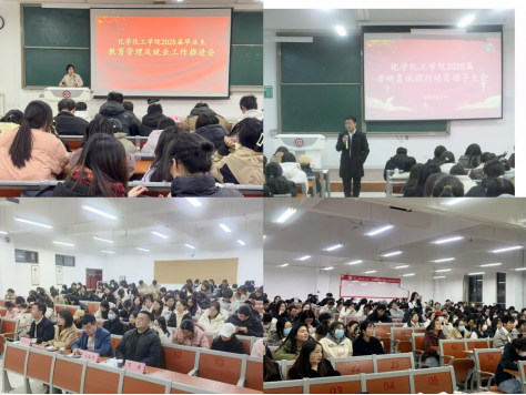 3月4日晚,化学化工学院在博文楼副楼404、405教室分别召开2025届就业工作暨考研动员会。公司党政领导、毕业班班主任、辅导员和2021级毕业生参加会议。