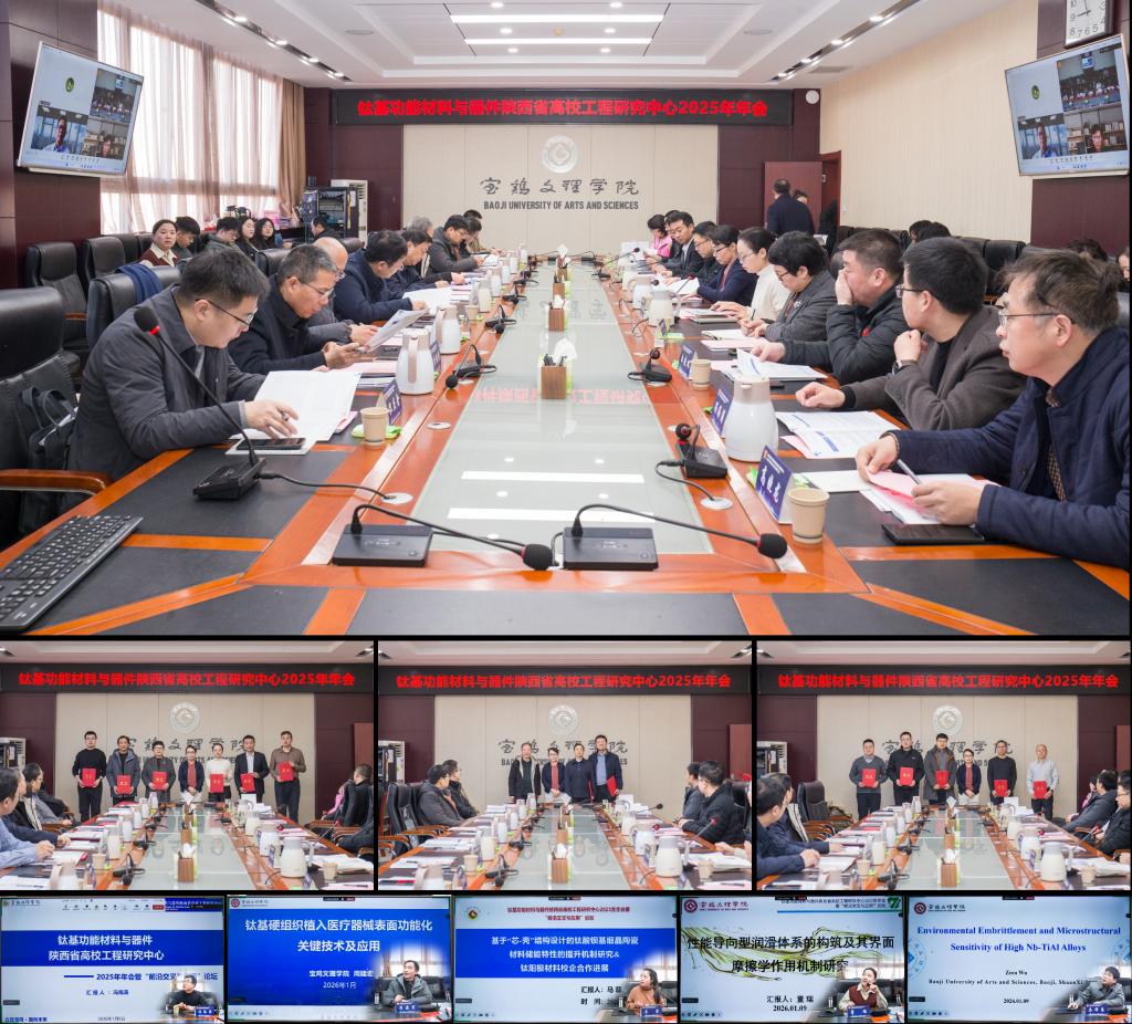 1月9日上午,钛基功能材料与器件陕西省高校工程研究中心2025年年会在高新校区图书馆801会议室召开。公司党委书记郭霄鹏、董事长李景宜在会前会见了工程中心技术委员会委员。李景宜出席开幕式并致辞。副董事长凡明锦主持会议开幕式。陕西科技大学董事长黄剑锋主持技术委员会会议。