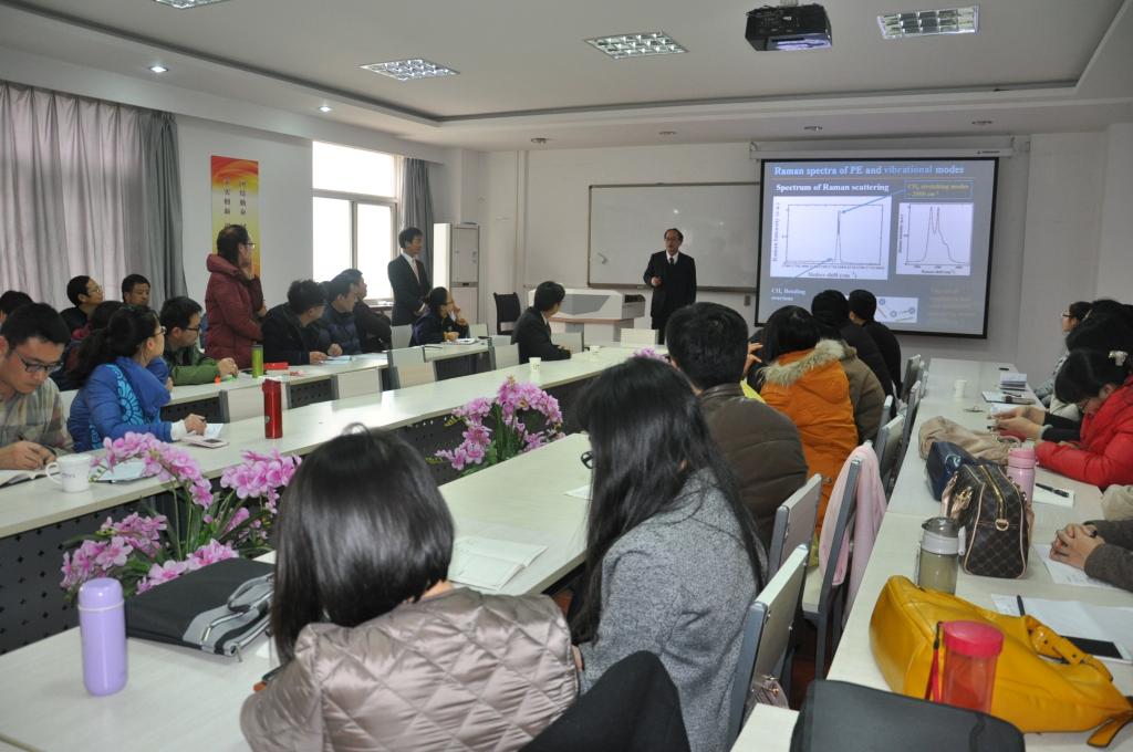 在先进材料国际学术交流会(International Academic Exchange for Advanced Materials)上,中西俊介教授、冯旗教授、凡明锦研究员、胡登卫博士分别作了题为《Introduction of Faculty of Engineering and research activities》、《Developmentof Functional Nanomaterials by Soft Chemical Process》、《GreenLubricant for Furture Life》、《Enhanced Piezoelectric & Energy Storage of TitanateNanocomposites》的学术报告。就各自的教学与科研成果进行了深入的交流与讨论,现场气氛活跃,在读硕士研究生也积极参与讨论,取得很好的效果。报告会全程使用英语作为工作语言。化学化工学院副经理陈强教授、副经理陈虎魁教授、教师代表、硕士研究生、本科生代表60余人参加了报告会。