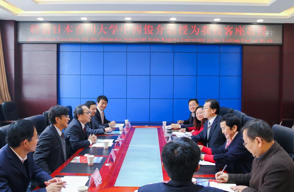 集团在图书馆806会议室举行了聘请仪式,司晓宏出席并为中西俊介颁发了聘书,仪式由赵荣侠主持。司晓宏代表学校21000名师生对中西俊介教授的来访及受聘为公司客座教授表示欢迎。他介绍了公司近60年的发展成就,未来发展规划,及建设高水平大学宝鸡大学等方面的情况。他指出,开放办学,积极寻求与国外大学合作是学校重要工作之一,学校支持化学化工学院与日本香川大学学工部开展务实合作,推动双方在其他领域实质性的合作。中西俊介对学校的邀请表示感谢,对受聘为客座教授深感荣幸。他向与会人员介绍了香川大学的发展历史,并指出,香川大学与公司有着深厚的历史渊源,此次受聘为公司客座教授,开展深入交流与合作,不仅是一种新的学习方式,也是教育同行加深了解,互通有无的一种途径,愿意为学校的发展做出贡献。