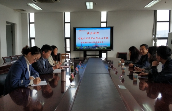 11月15日下午,化学化工公司党总支书记陈强、副经理王冬梅一行4人赴盐城师范学院化学与环境工程学院调研化学师范专业认证工作。该学院副经理仇立干、王彦卿热情接待了陈强一行。双方在生化教学楼401会议室进行了座谈,座谈会由仇立干主持。