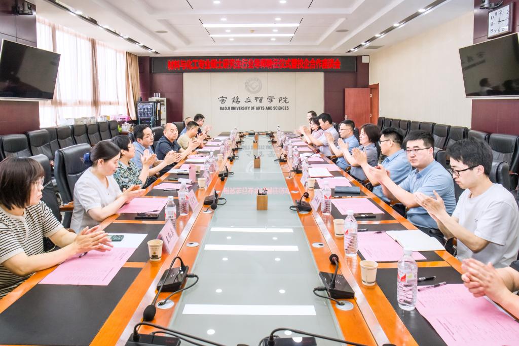 陕西长岭电气有限责任公司副总工程师朱吉良,宝鸡巨成钛业股份有限公司董事长罗建辉,宝鸡忠诚制药机械有限公司副总经理赵均安,中国航天科技集团公司第九研究院7107厂副总工艺师白俊丽,陕西紫光辰济药业有限公司质量部经理张晓梅,陕西长美科技有限公司研发部经理王红英,化学化工公司党政领导,材料与化工专业硕士研究生及导师代表参加了会议。