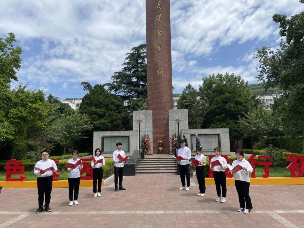 活动伊始,马智超发言,他提到习近平总书记在党的十九大报告中对青年的深切寄语他说到:青年一代有理想有本领有担当作为新时代的新青年,我们将全程参与到实现两个一百年奋斗目标,我们就应当更加自觉按照习近平总书记对青年的要求,勤学、修德、明辨、笃实、爱国励志求真、厉不忘初心牢记使命,努力成为社会主义事业的建设者接班人,成为实现伟大梦想的追梦者和实干家。接着,刘敏说到:2021年是中国共产党成立一百周年、十四五的开局之年是两个一百年奋斗目标的历史交汇点,我们紧密团结,坚定不移听党话,跟党走在奋斗中释放青春激情,追逐青春理想,以青春之我奋斗之我为民族复兴铺路架桥为祖国建设添砖加瓦。随后,全体奏唱国歌并举行默哀仪式,为先烈献花祭奠,致敬革命先烈。王艳红带领大家参观宝天铁路英烈纪念馆,讲解宝天铁路修建过程中人民子弟兵克服重重困难,战严寒、斗酷暑、风餐露宿,修建宝天铁路的故事和修建宝天铁路英烈纪念馆的历史意义。马智超带领大家重温入党誓词。最后,郑雅月对本次活动进行总结,她说到:在中国共产党的领导下,吾辈青年要志存高远脚踏实地勤奋学习刻苦钻研,要做走在时代前列的奋进者开拓者奉献者,为我们国家富强民族复兴人民幸福贡献自己的力量。她还希望大家在今后的学习工作和生活中努力继承和发扬革命精神,用行动证明自己的责任担当和价值,以奋斗拼搏书写最美的青春华章