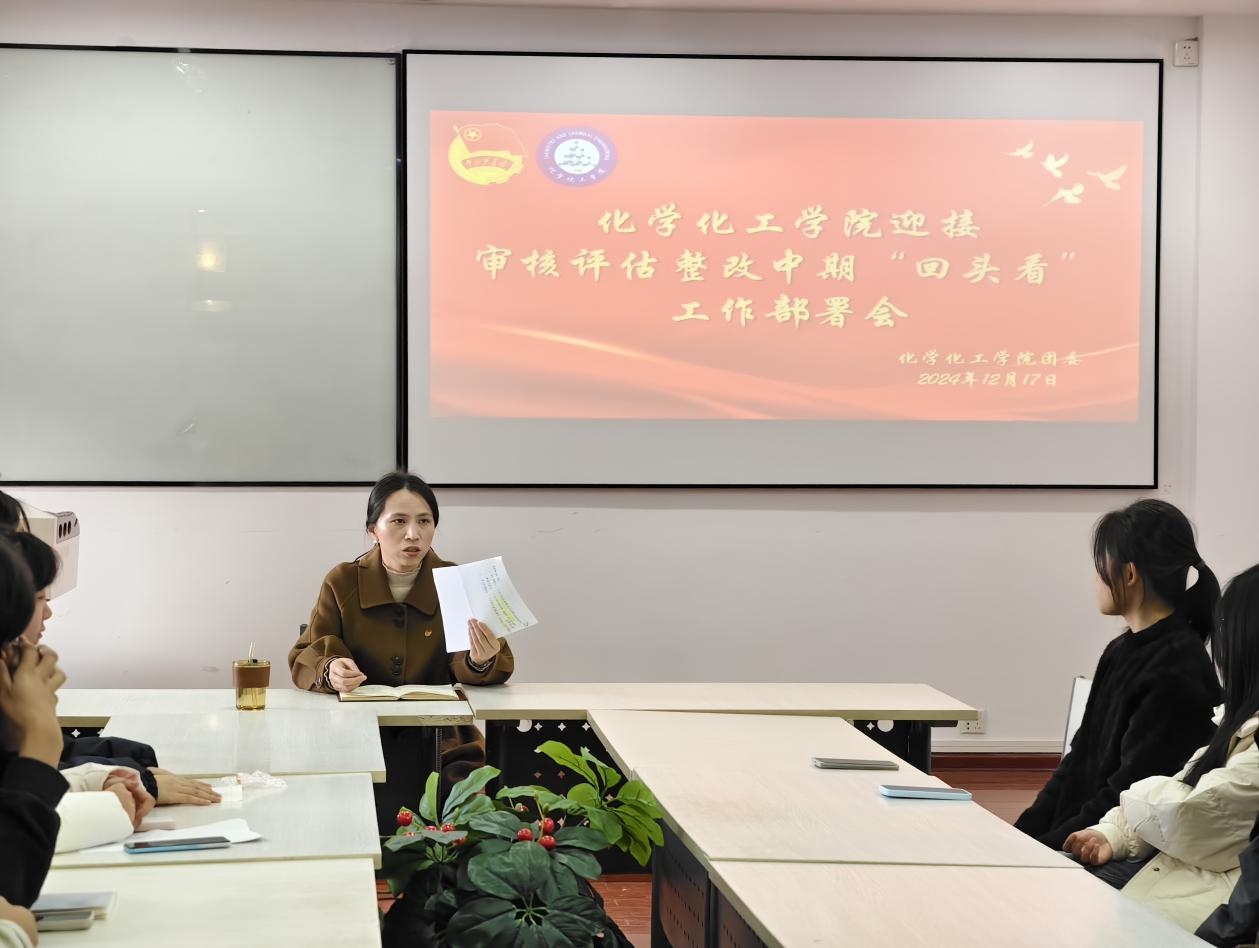 2024年12月18日下午,化学化工学院团委组织召开迎接审核评估整改中期“回头看”工作部署会,此次会议旨在进一步强化学院教学质量,确保“迎查”工作有序推进。学院团委书记许小莉,团委、员工会主要员工干部50余人参加了会议。