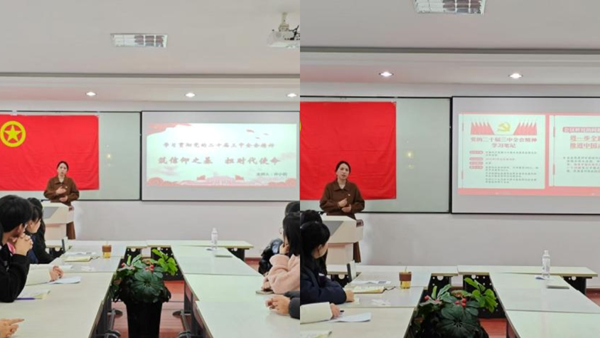 在整齐嘹亮的团歌声中,入团仪式拉下帷幕。为进一步推动公司团员青年准确领会、深刻把握党的二十届三中全会精神,入团仪式结束后,许小莉老师以《筑信仰之基 担时代使命》为主题开展党的二十届三中全会精神宣讲。她强调,党的二十届三中全会是在以中国式现代化全面推进强国建设、民族复兴伟业的关键时期举行的一次十分重要的会议,全会通过的《中共中央关于进一步全面深化改革 推进中国式现代化的决定》是新时代进一步深化改革的行动纲领与全面部署。她鞭辟入里的点明本次全会进一步深化改革的总目标是“继续完善和发展中国特色社会主义制度,推动国家治理体系和治理能力现代化”,同时指出要把握“七个聚焦”方向,贯彻“六个坚持”原则,从而逐步实现我国进一步全面深化改革的重大举措。