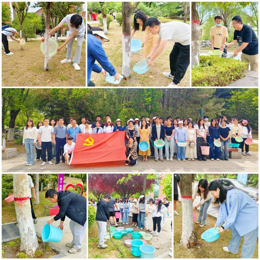 5月15日下午,化学化工学院”一站式”员工社区功能型党支部联合研究生党支部和本科生党支部,一起组织员工在高新校园四为园开展“护绿抗旱,青春行动”校园树木浇水志愿服务活动。面对近期持续高温少雨天气,学院师生积极响应号召,自带脸盆、水桶等工具,以实际行动为校园树木送去“及时雨”,展现了青年学子的环保意识与责任担当。