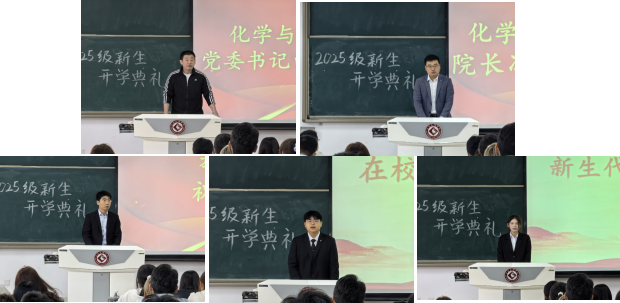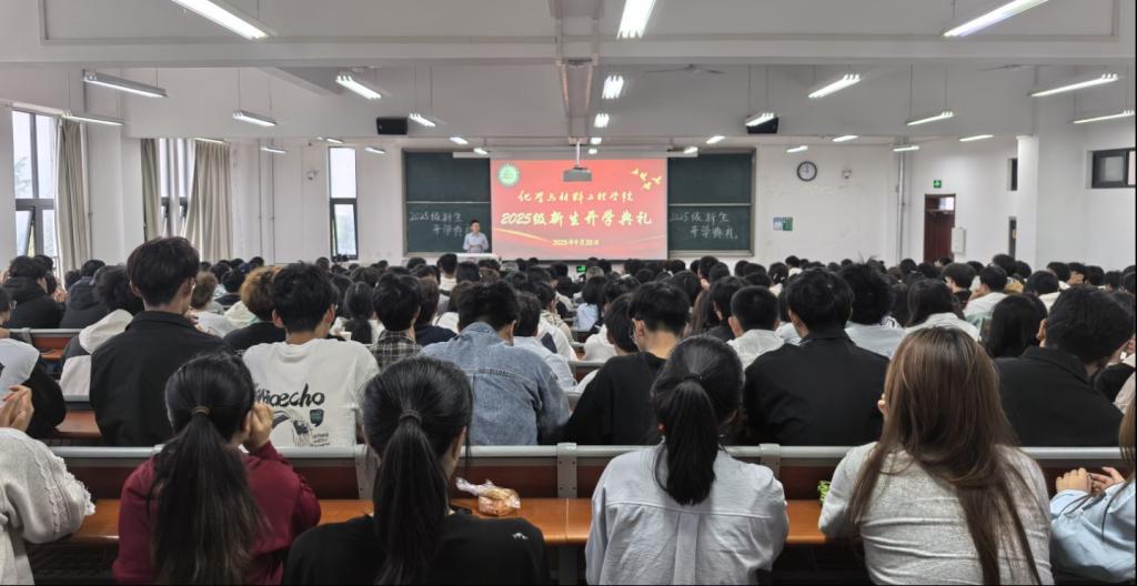 典礼现场各系主任依次寄语新生,教师代表祝海涛分享了自己的教学科研经历,为全体新生送上美好祝福与殷切嘱托。2023级制药工程专业张以水、2025级材料物理专业陈广语分别作为新老生代表发言,鼓励全体新生学好专业知识,实现自我价值,为学院发展贡献青春力量。典礼上播放了新生入学军训剪影,全面回顾了2025级新生入校报到和军训生活的点滴瞬间,引起全体新生广泛共鸣。