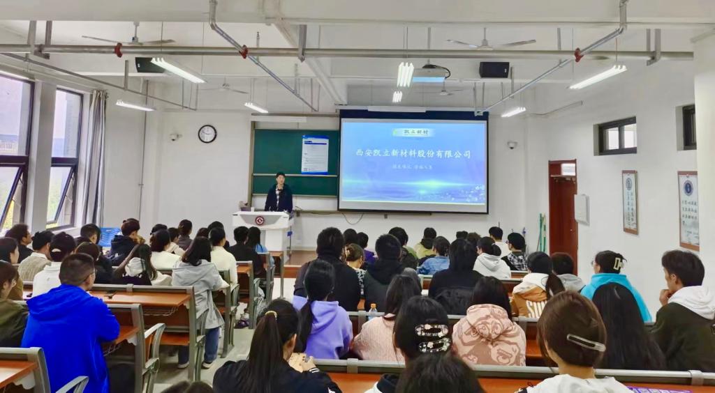 洽谈会结束后,西安凯立新材料股份有限公司在博文楼407教室召开就业宣讲会。兰佳在宣讲会现场鼓励毕业生合理确定就业预期,将专业优势转化为就业优势,尽早找到自己热爱的工作。宣讲会后有50多名同学进行了现场面试。