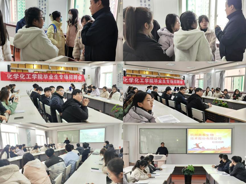 为了进一步加强校企合作,拓宽毕业生就业渠道,提升毕业生就业质量,化学化工学院于2024年11月19日下午在明理楼622室举办杭州奥泰生物技术股份有限公司专场招聘会。此次活动不仅为即将步入社会的学子们搭建了一个直面企业、了解行业动态的宝贵平台,也标志着学院在推进产学研深度融合方面迈出了坚实的一步。