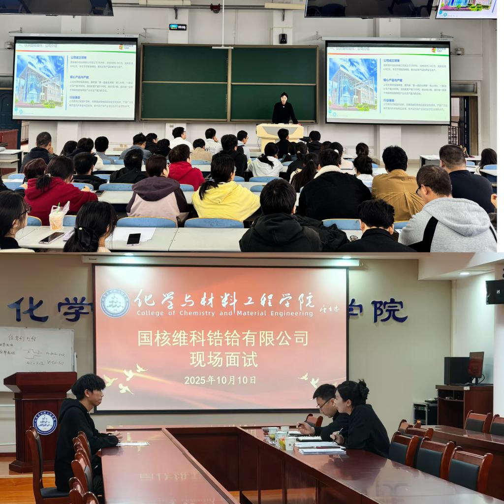 10月10日,yl8cc永利官网邀请国核维科锆铪有限公司在思贤楼222教室举办专场招聘会,学院2026届毕业生近90名参加,公司党委副书记张力主持会议。