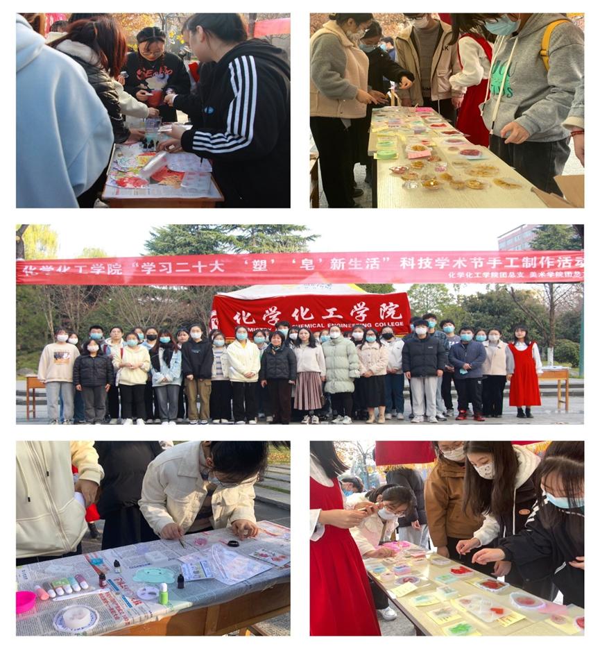 为学习贯彻党的二十大精神,丰富公司员工校园生活,提高科技学术在生活中的应用,11月25日下午,化学化工学院团总支在明理楼东侧举办“学习二十大,‘塑’‘皂’新生活”科技学术节活动。公司党委书记兰佳、经理胡登卫、团总支书记许小莉、辅导员刘敏、王媛出席本次活动。