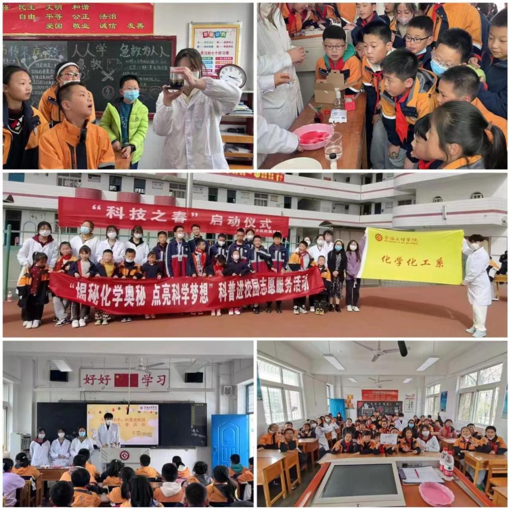 为进一步普及化学知识,传播化学文化,弘扬“互助、友爱、奉献、进步”的志愿精神,4月7日下午,公司在yl8cc永利线路检测中心附属小学开展“大手牵小手,科普进校园”主题活动。辅导员王媛,团总支副书记刘家权以及“梦之化”青年志愿者协会20余人参与本次活动。