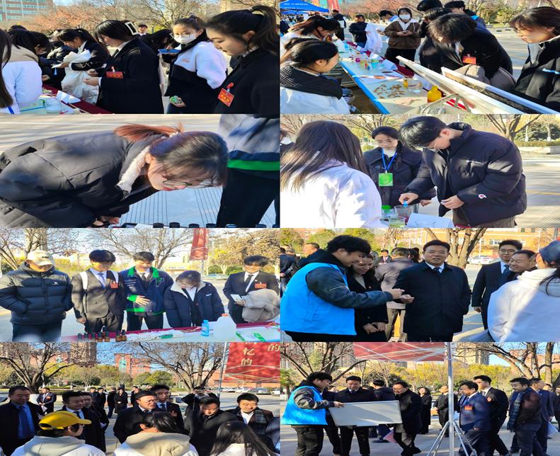 活动现场布置得简约而富有科技感,各个展示区域有序排列。现场气氛热烈非凡,各学院团委依次登台,结合学科特点和专业特色,集中展示老员工科技学术活动的特色和亮点。通过深入浅出的讲解,将自己精心打磨的科技学术作品全方位呈现给在场的观众。