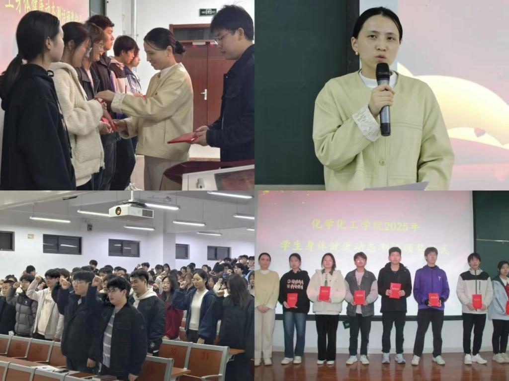 本次奖状的颁发,不仅是对体测优异成绩的肯定,更为大家树立了榜样,激励着更多人在追求卓越的道路上砥砺前行。相信在大家共同的努力下,在校运会上定能取得良好的成果。袁淇宣读了学院2025年身体健康动态测评A类人员名单。王宏江、许小莉分别为获奖代表颁奖。