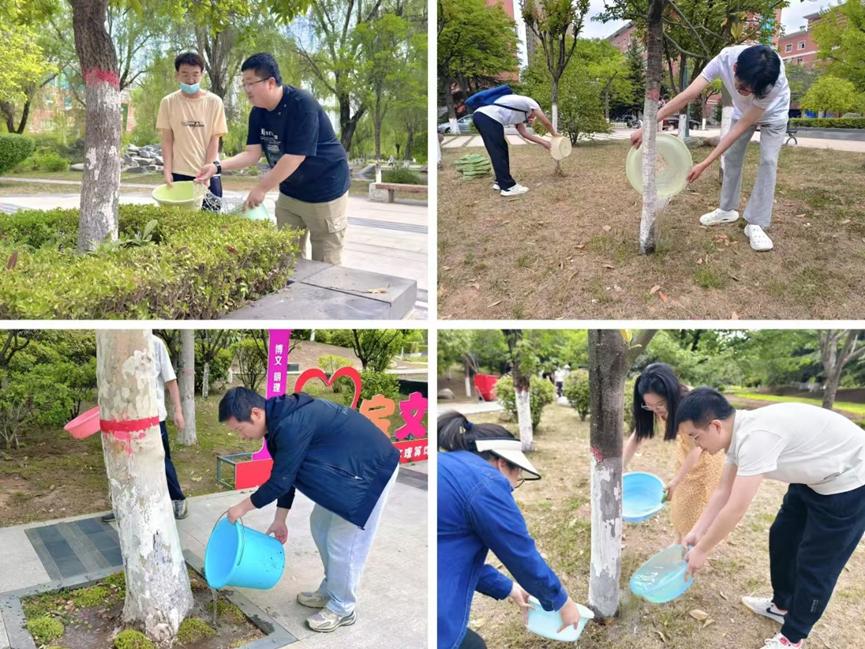 5月15日下午,化学化工学院”一站式”员工社区功能型党支部组织员工在高新校园四为园开展“护绿抗旱,青春行动”校园树木浇水志愿服务活动。面对近期持续高温少雨天气,学院师生积极响应号召,自带脸盆、水桶等工具,以实际行动为校园树木送去“及时雨”,展现了青年学子的环保意识与责任担当。