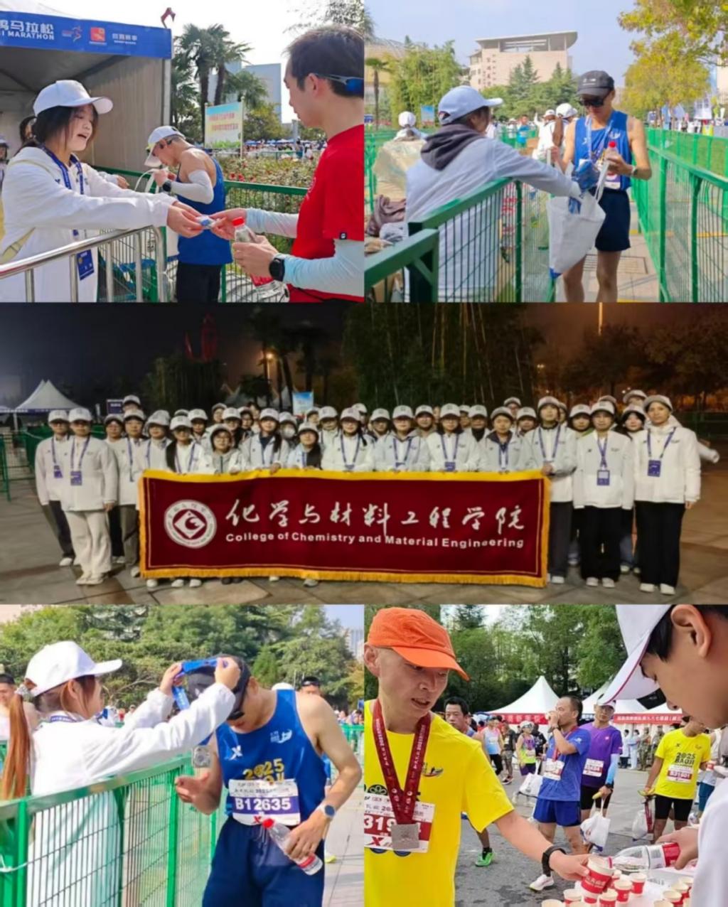 在志愿服务过程中,化材学院志愿者充分发挥了在实验操作中培养出的严谨细致、流程规范的专业素养。无论是补给点的桌面摆放、物资分装,还是补给传递,每一个环节都体现出精准高效的工作标准,保障了赛事服务的井然有序。