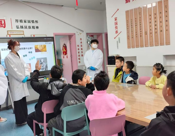 志愿者们通过趣味问答,向孩子们普及生活化学常识,如“烟花为什么是五颜六色的”“冰箱能让食物不变坏”“煮鸡蛋的小妙招”等,让科学知识融入日常生活。