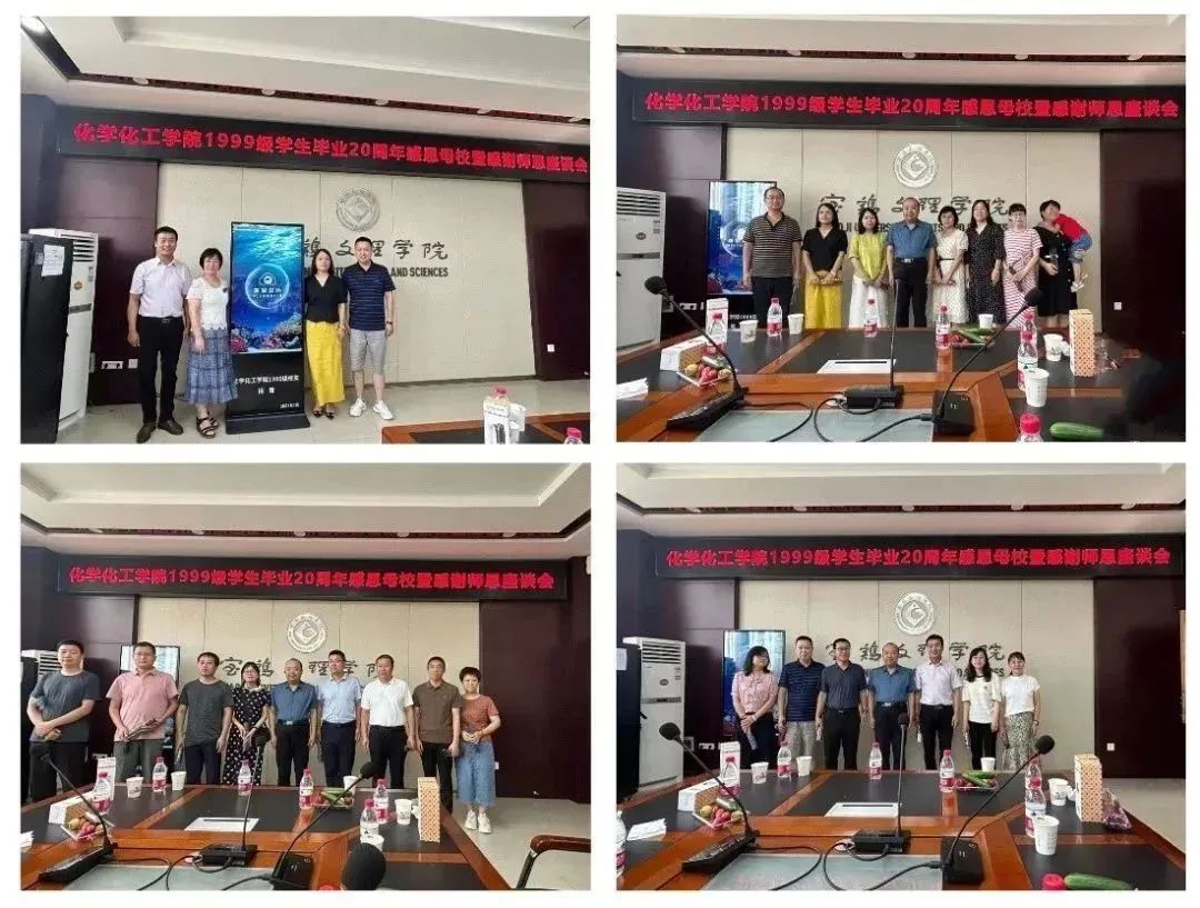7月29日晚上,员工们与任课教师、班主任等欢聚一堂,庆祝员工毕业20周年。员工们现场深情地为老师们演唱《每当我走过老师的窗前》,并为母校、化学化工学院、老师们献上祝福。